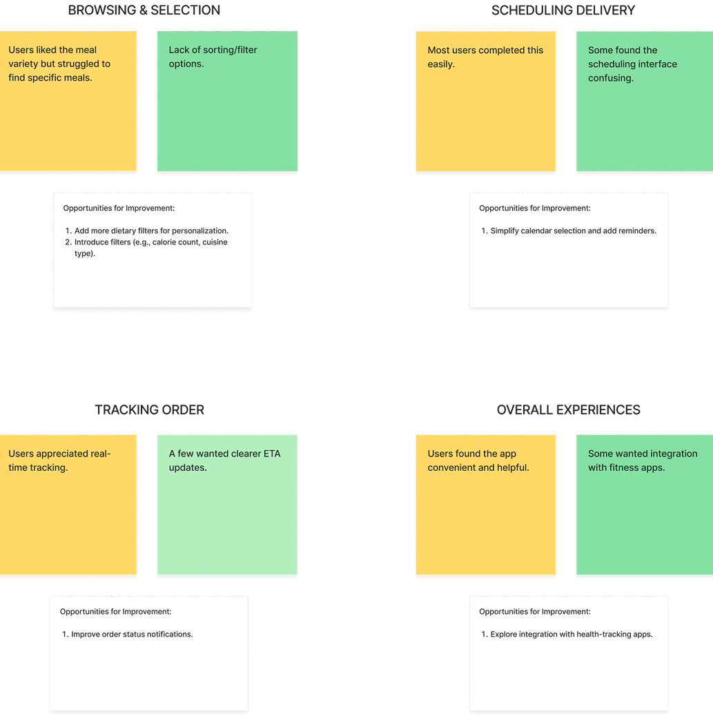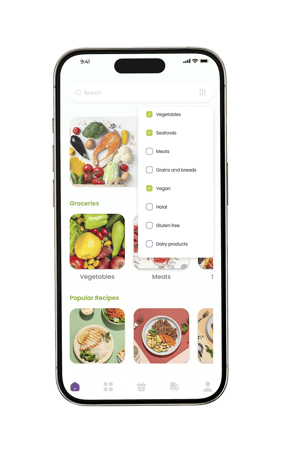 Based on insights from usability studies, I implemented design changes such as adding more dietary filters for personalization, including options like calorie count and cuisine type.
